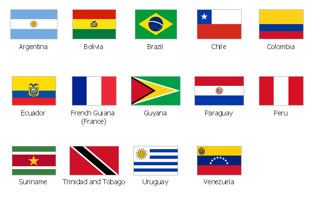 Flag of argentina, flag of bolivia, flag of brazil, flag of chile, flag of colombia, flag of ecuador, flag of guyana, flag of paraguay, flag of peru, flag of suriname, flag of uruguay.